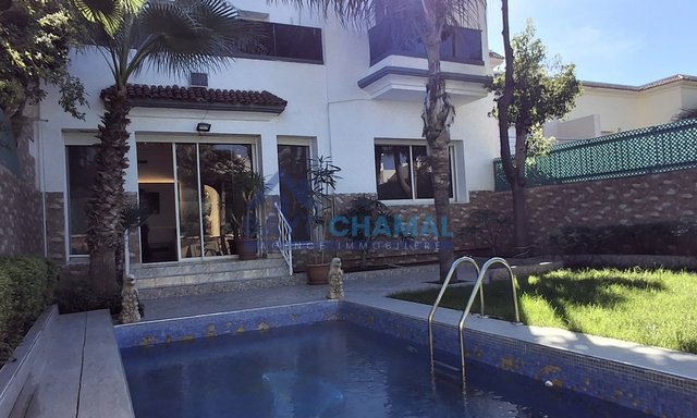 BAYT CHAMAL vous propose une villa sans vis-à-vis à la location trés grande à malabata, dans une résidence fermée avec pis sécurisé et familial .